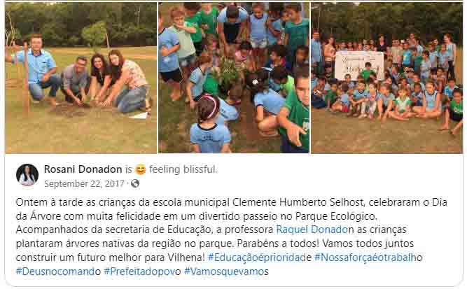 “Nas gestões que estive na Prefeitura, lembro bem, e quem é adulto hoje também lembra: a cidade era muito mais fresca, as praças tinham mais árvores, os canteiros eram mais arborizados e não passávamos calor à noite. Sabemos que o planeta inteiro está aquecendo, mas a temperatura da zona urbana de Vilhena é responsabilidade nossa. E a Prefeitura precisa ter papel decisivo nisso, dar o exemplo”, conta Raquel.