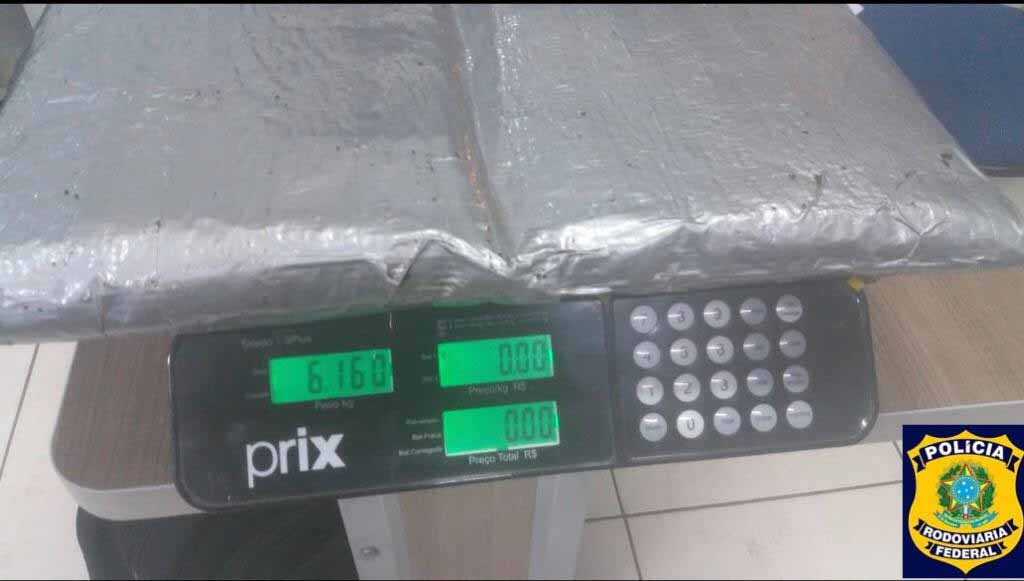 A mulher, que era uma das passageiras de um ônibus com destino a São Paulo/SP, demonstrou nervosismo exacerbado perante os policiais, que, em virtude disso, efetuaram buscas na bagagem, onde localizaram 6.160 kg de substância análoga à cocaína.