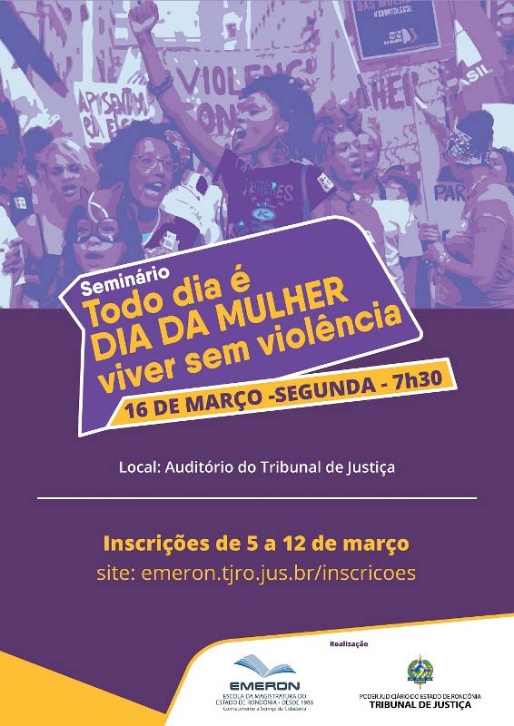 O dia 8 de março é reconhecido internacionalmente pela Organização das Nações Unidas (ONU) como uma data para recordar a luta de mulheres que trabalhavam em fábricas nos Estados Unidos e em alguns países da Europa e que, a partir de suas reinvindicações, abriram caminhos para a conquista de direitos para a população feminina. Neste mês, em alusão ao Dia Internacional de Luta das Mulheres, a Escola da Magistratura do Estado de Rondônia (Emeron) promove a campanha “Todo Dia é Dia da Mulher Viver sem Violência”, como forma a contribuir para a discussão da violência de gênero na sociedade, para o esclarecimento da população e para o aprimoramento de profissionais e interessados pelo tema.