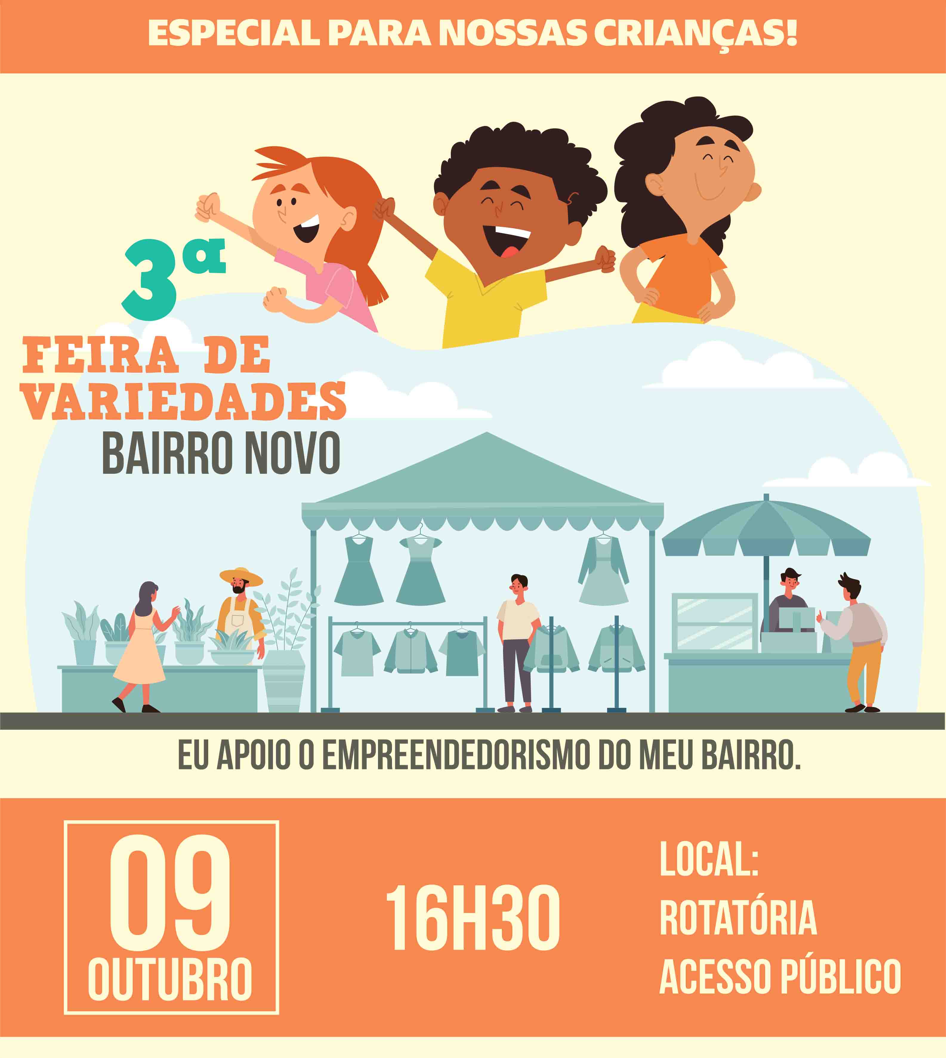 No mês de outubro a feira vem colorida e divertida, especialmente para as crianças. A Feira de Variedades do Bairro Novo vai para a terceira edição, neste sábado, 9, a partir das 16h30, na rotatória do bairro. A novidade desta vez é a parceria firmada com a FUNCULTURAL, Fundação Cultural de Porto Velho.