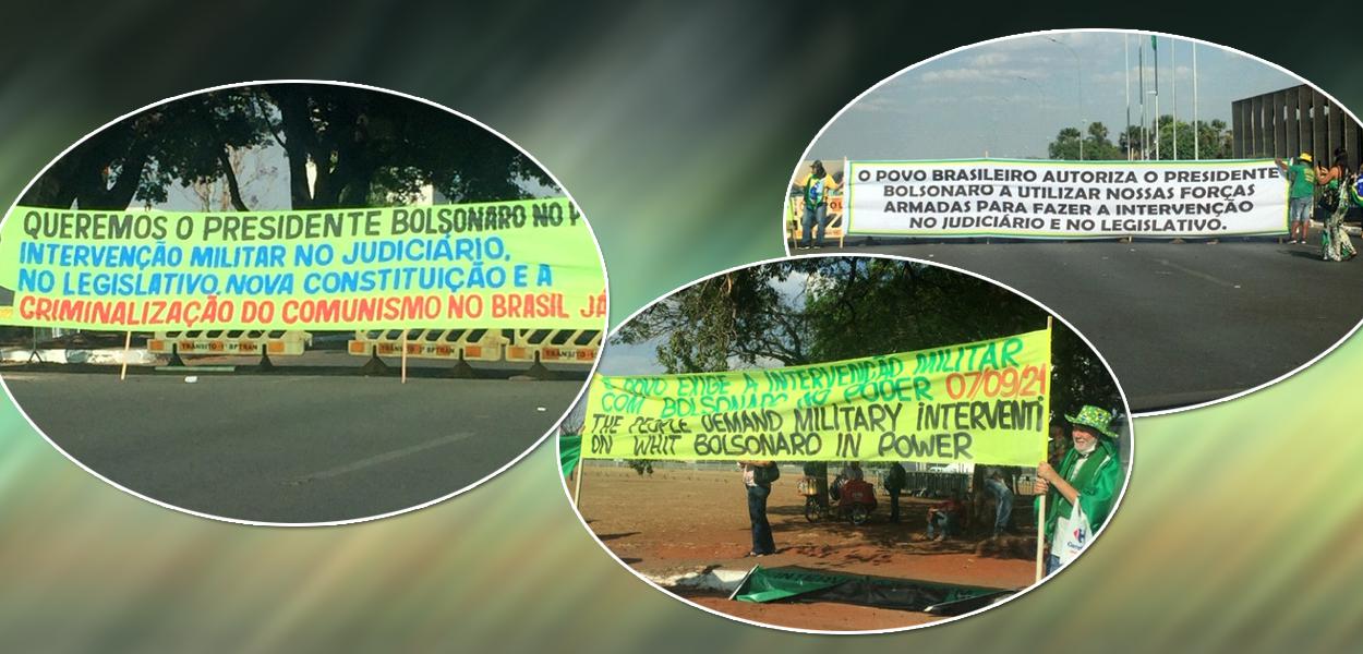A próxima faixa foi escrita em português e em inglês, certamente na expectativa de que seja reproduzida em jornais e sites estrangeiros, para criar a ideia de que o golpismo de Bolsonaro tem apoio popular.