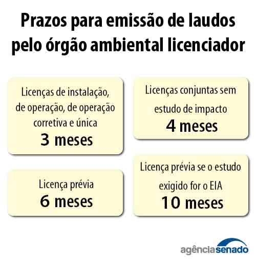 De acordo com o texto dos relatores, as autoridades envolvidas terão prazo de 30 dias para se manifestarem sobre o termo de referência (emitido por órgãos ambientais), a partir do recebimento de solicitação da autoridade licenciadora. No texto proveniente da Câmara, esse prazo poderia ser prorrogado por 10 dias, mas agora a prorrogação foi estendida a 15 dias, com a exigência de que seja devidamente justificada.