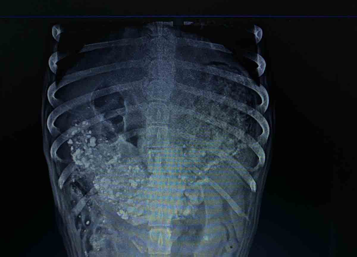 Com fome, um dos animais tinha pedras no estômago, conforme constatado em exame de raio-X