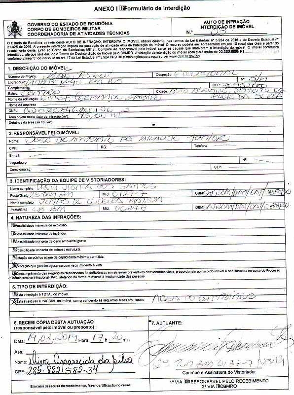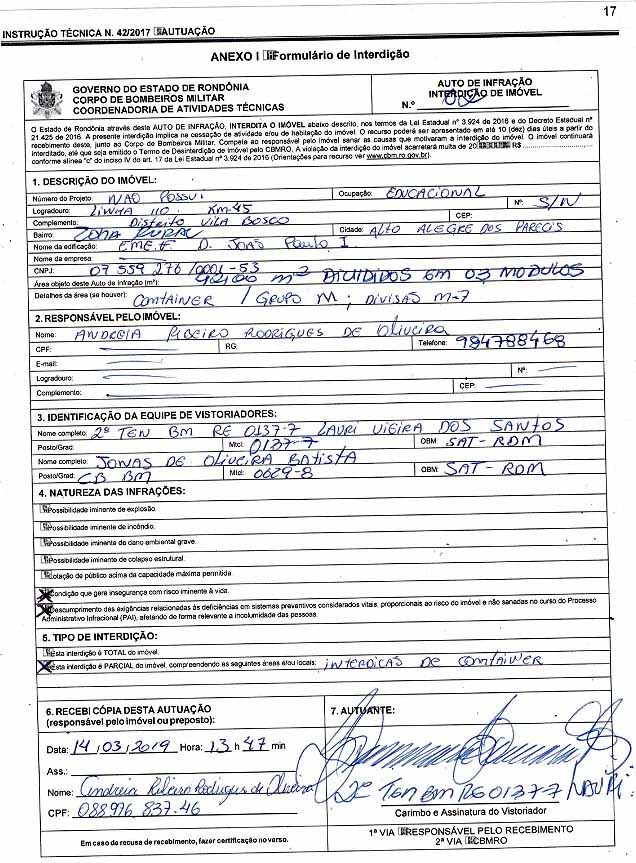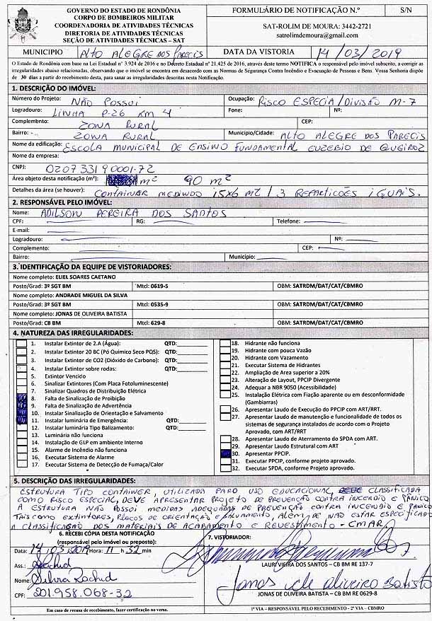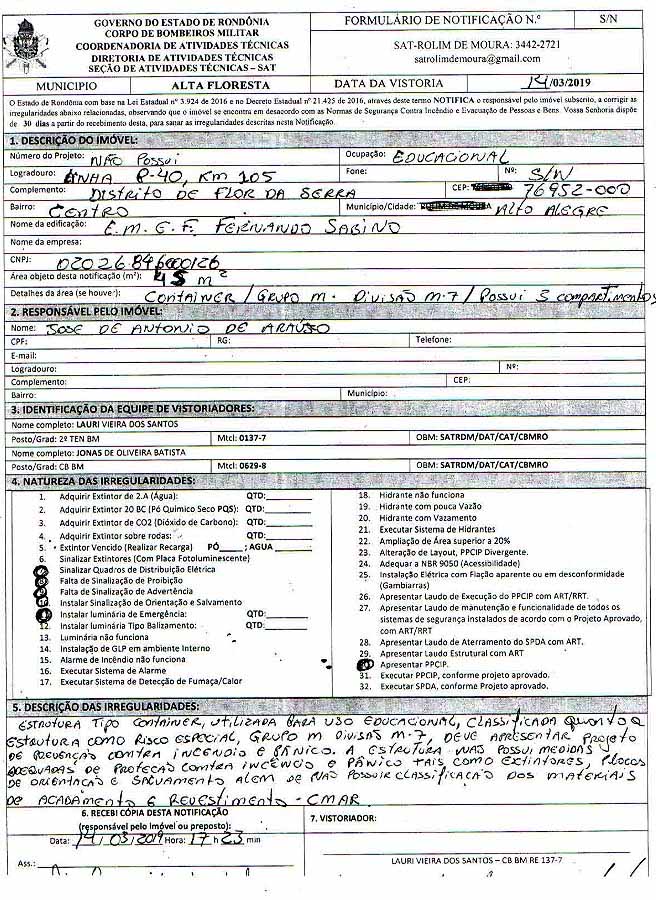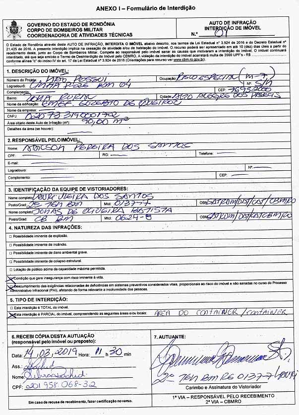 O laudo dos bombeiros em um destes estabelecimentos localizado na Linha P 40 do KM 105 do distrito de Flor da Serra, em Alta Floresta do Oeste, por exemplo, aponta risco de explosão e incêndio no interior dos contêineres, afirmando que o perigo é iminente. Neste local, o laudo dos bombeiros é assustador: as condições geram insegurança com risco à vida.