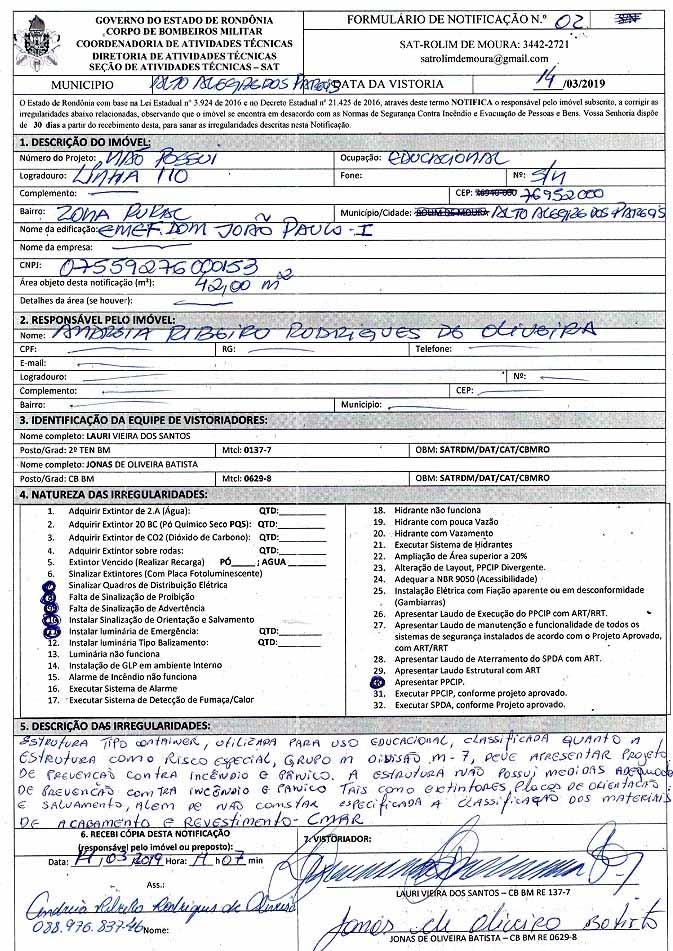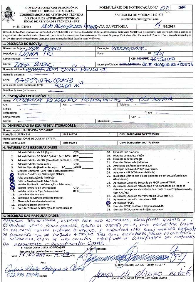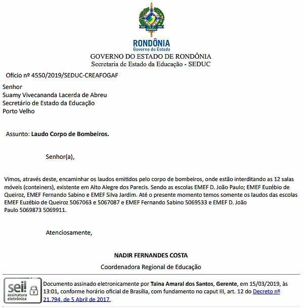 Vários contêineres adquiridos pelo Governo de Rondônia para serem utilizados como salas de aulas para crianças do ensino fundamental e médio são verdadeiras arapucas, sem qualquer condição de segurança. Eles apresentam iminente risco de explosão e incêndio, colocando em risco a vida de crianças e professores.