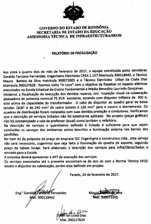 Esta escola é apenas um dos exemplos, mas em todas elas foram encontrados, praticamente, os mesmos problemas ou até mais graves, sem que o Ministério Público do Estado e o Tribunal de Contas tenham tomado qualquer providência até agora, pelo menos que tenha vindo a público.