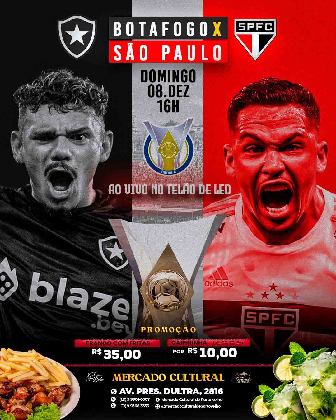 Vai ter telão de Led na parte externa do Mercado para transmissão do jogo Botafogo X São Paulo. Já na parte interna, vai ter televisões e um telão para transmissão do jogo do Palmeiras X Fluminense.