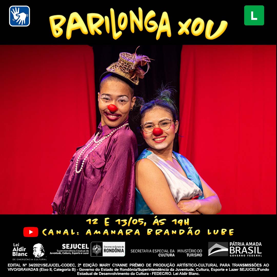 “Barilonga Xou” é um espetáculo circense de palhaçaria, desenvolvido pelas atrizes Amanara Brandão e Flávia Diniz, que dão vida às palhaças Milonga e Barina.