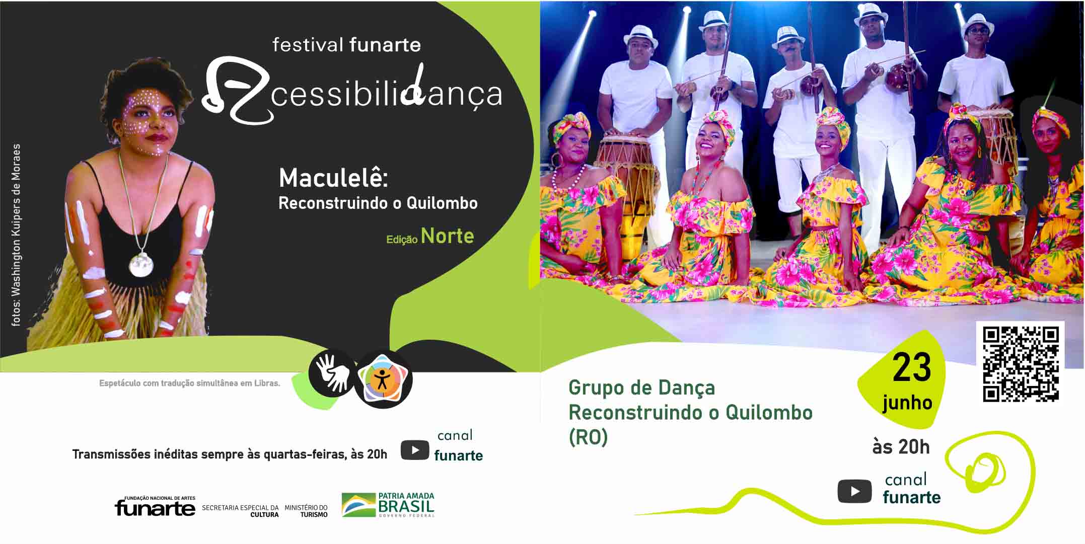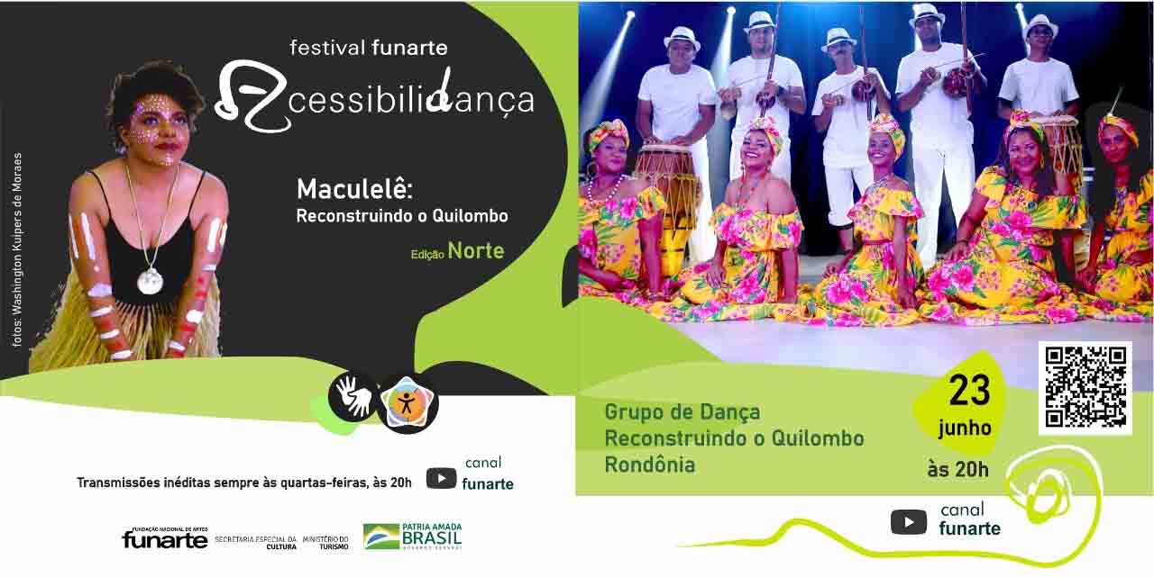 Será exibido nesta quarta-feira(23) a partir das 20 horas (horário de Brasília), no Festival Funarte Acessibilidança o espetáculo de dança em vídeo "Maculelê: Reconstruindo o Quilombo", que foi produzido pelos produtores culturais vilhenenses Washington Kuipers, Andréia Machado e Marcio Guilhermon.