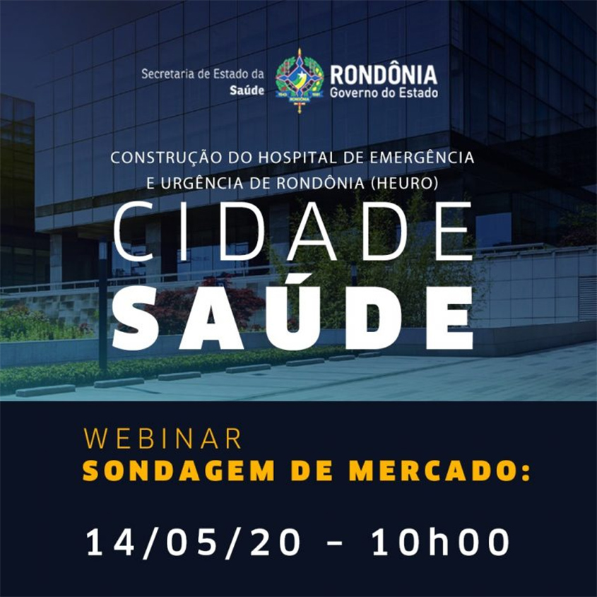 Acontece nesta quinta-feira (14), às 9h (horário local), a videoconferência para sondagem de mercado (Market Sounding), em São Paulo, sobre a construção do novo Hospital de Emergência e Urgência de Rondônia (Heuro).