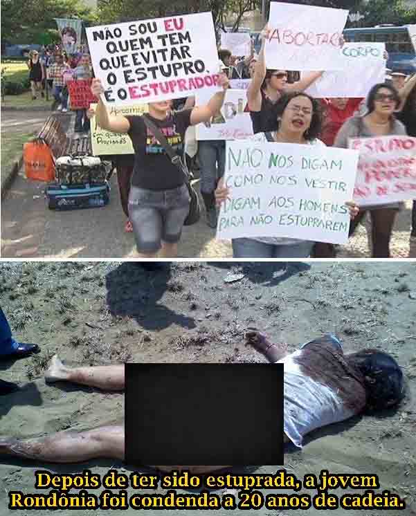 A pobre Rondônia não tinha a menor ideia de quantos meses estava grávida. Seus pais até procuraram ajuda no posto médico da cidade, mas de nada adiantou. Então, por conta própria e seguindo a indicação de alguns vizinhos e conhecidos, deram-lhe algumas “garrafadas” de ervas abortivas. Depois de interromper a gravidez, o estado de saúde da menina piorou e a solução foi procurar ajuda médica “de qualquer jeito”. A partir daí o caso tomou outras proporções. O delegado da cidade abriu o devido inquérito e Rondônia teve que responder a um longo processo. “Aborto é crime. E principalmente nesse caso gravíssimo, quando o feto já estava com mais de 22 semanas de gestação”, disse o delegado a seus pais. E assim foi feito. Rondônia foi presa, julgada e condenada a uma pena de quase 20 anos de prisão. Seus dois estupradores foram presos e também julgados.
