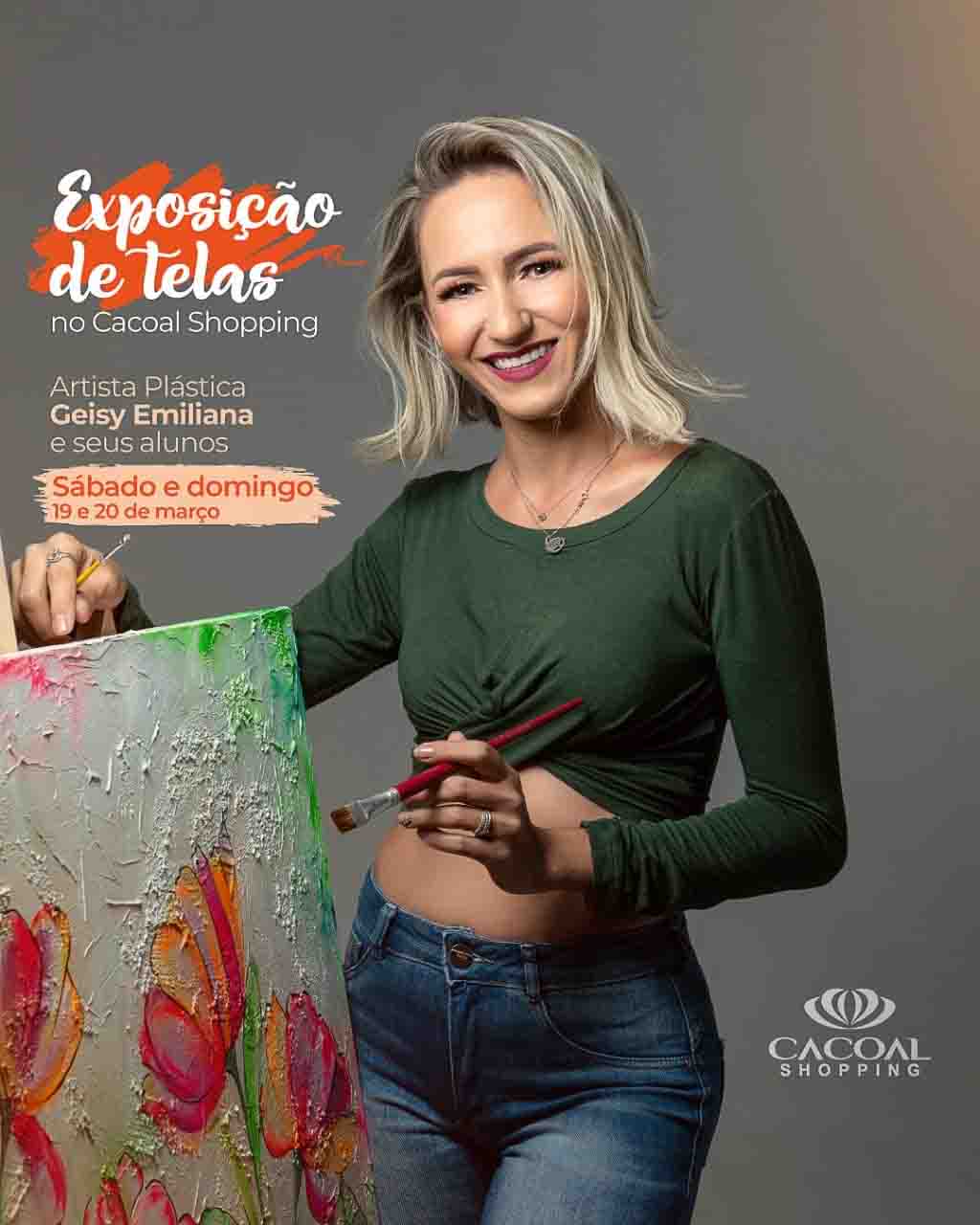 O Cacoal Shopping recebe neste final de semana (19 e 20 de março) a “Exposição de Telas” dos alunos da renomada artista plástica Geisy Emiliana. O objetivo é divulgar a cultura da de Cacoal, dando ênfase às artes plásticas. A exposição ficará aberta ao público no sábado e domingo, no hall de entrada do Shopping.