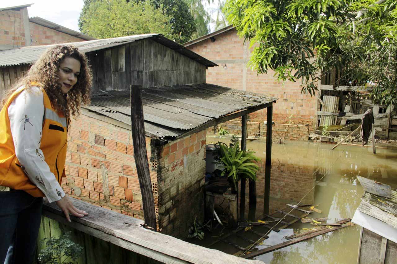 Às 9h30 desta quarta-feira, as águas do Rio Negro cobriam a Rua Pio Preto no bairro Satélite. “Foi bom que vieram logo, antes do mosquito atacar, e aqui é demais”, comentou Luiz Valter Gomes, 69, ex-funcionário em sete empresas de mineração de cassiterita em Rondônia, feliz ao conhecer a secretária Luana Rocha.