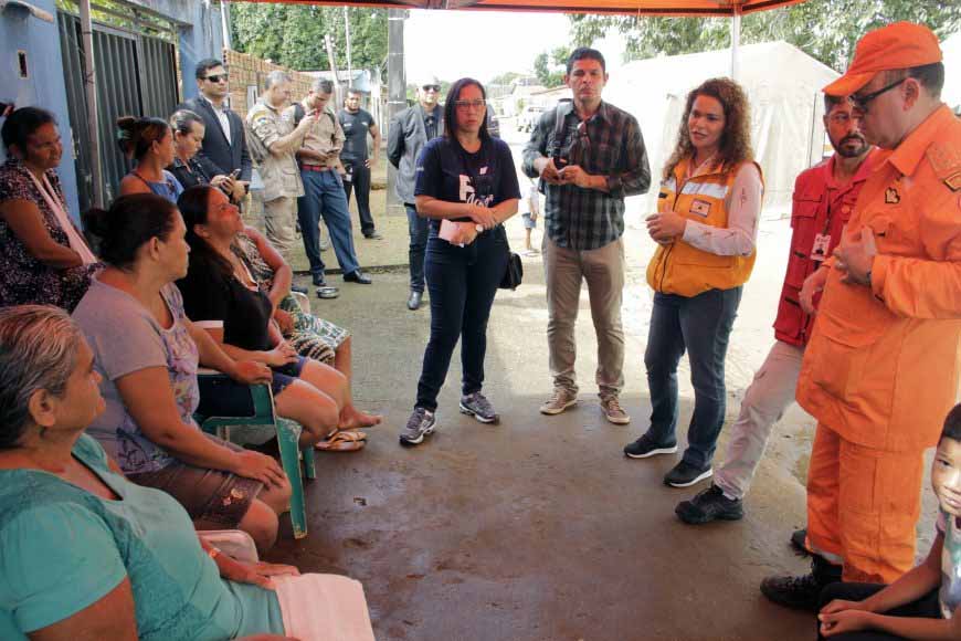 Secretária Estadual da Assistência Social, Luana Rocha, ouve depoimentos de famílias desabrigadas em Candeias do Jamari