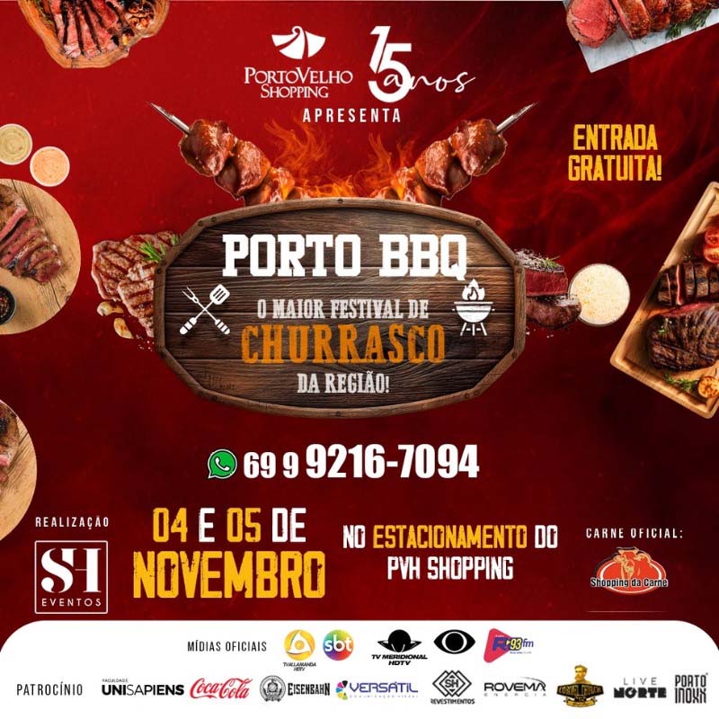 O Porto Velho Shopping receberá, no sábado (4) e domingo (5), o "Porto BBQ", o maior Festival de Churrasco da Região, que faz parte da programação das comemorações dos 15 anos do empreendimento. Com entrada gratuita, o evento reunirá 16 experientes expositores de churrasco, proporcionando aos visitantes a oportunidade de apreciar os cortes mais saborosos preparados por mestres churrasqueiros locais.