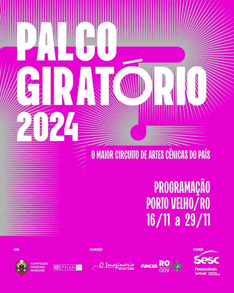 Maior projeto de circulação de artes cênicas do país, a 26ª edição do Palco Giratório dá início a mais uma etapa em Porto Velho neste final de semana, dia 16, levando apresentações de espetáculos, ações formativas e seminário a vários cantos da cidade, ampliando o acesso dos porto-velhenses.