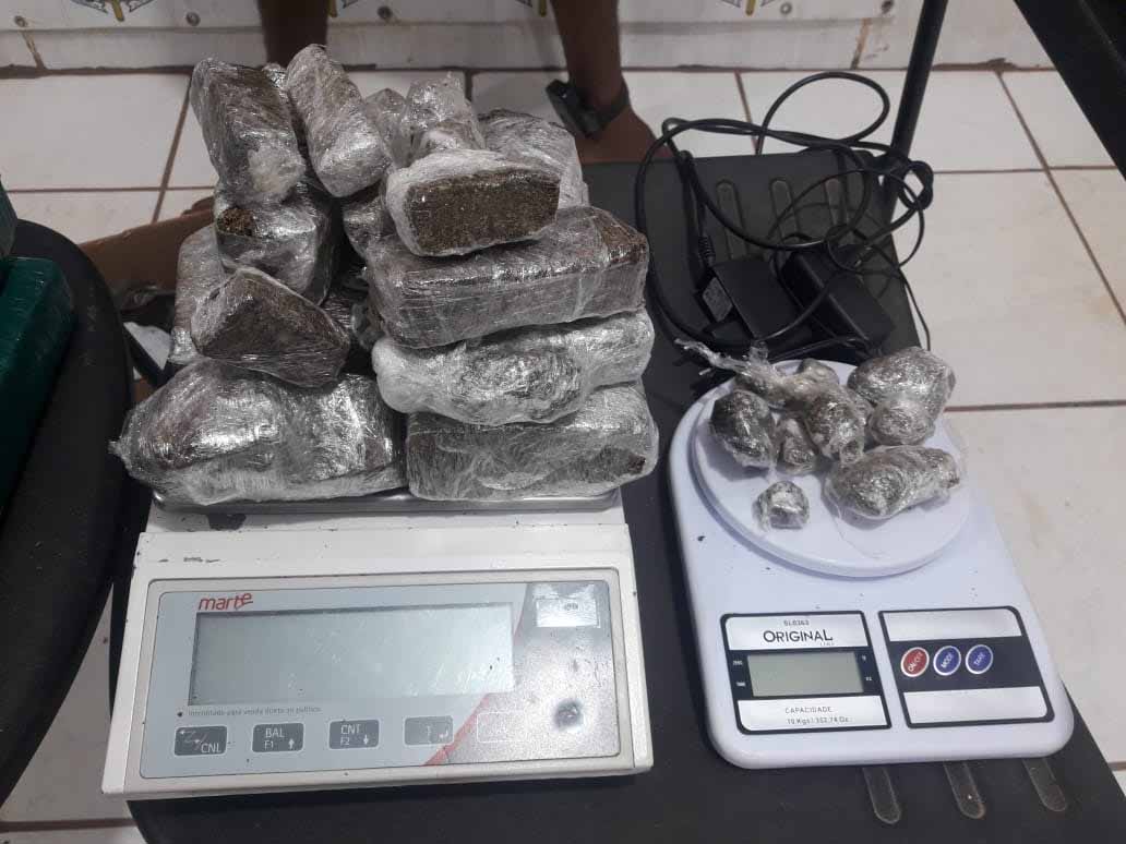 Quando percebeu que seria abordado, ele acelerou o passo e entrou em uma casa. Aos policiais disse que a casa era dele. Os PMs avistaram um tablete grande de maconha e uma balança de precisão no chão da sala. Durante buscam foram localizados outros tabletes e mais uma balança de precisão, bem como material usado para endolar a droga para a venda.