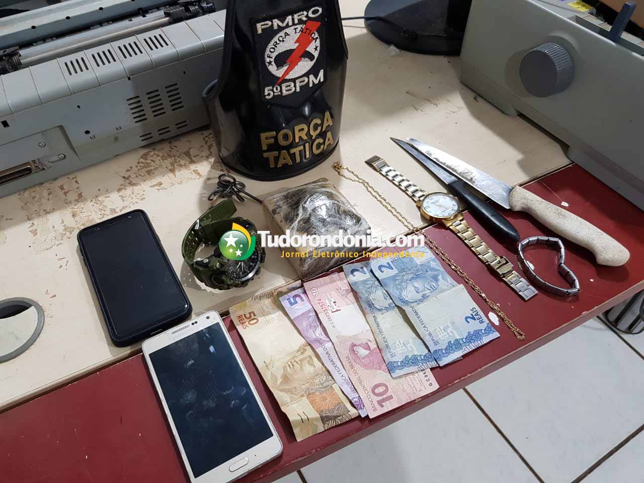 Segundo o boletim de ocorrência, a polícia prendeu três deles após encontrar um tablete de maconha e dinheiro trocado em posse dos mesmos. Na residência de onde eles saíram correndo, a PM encontrou, ainda segundo o boletim de ocorrência, cinco bicicletas. A polícia disse acreditar que as bicicletas seriam roubadas.