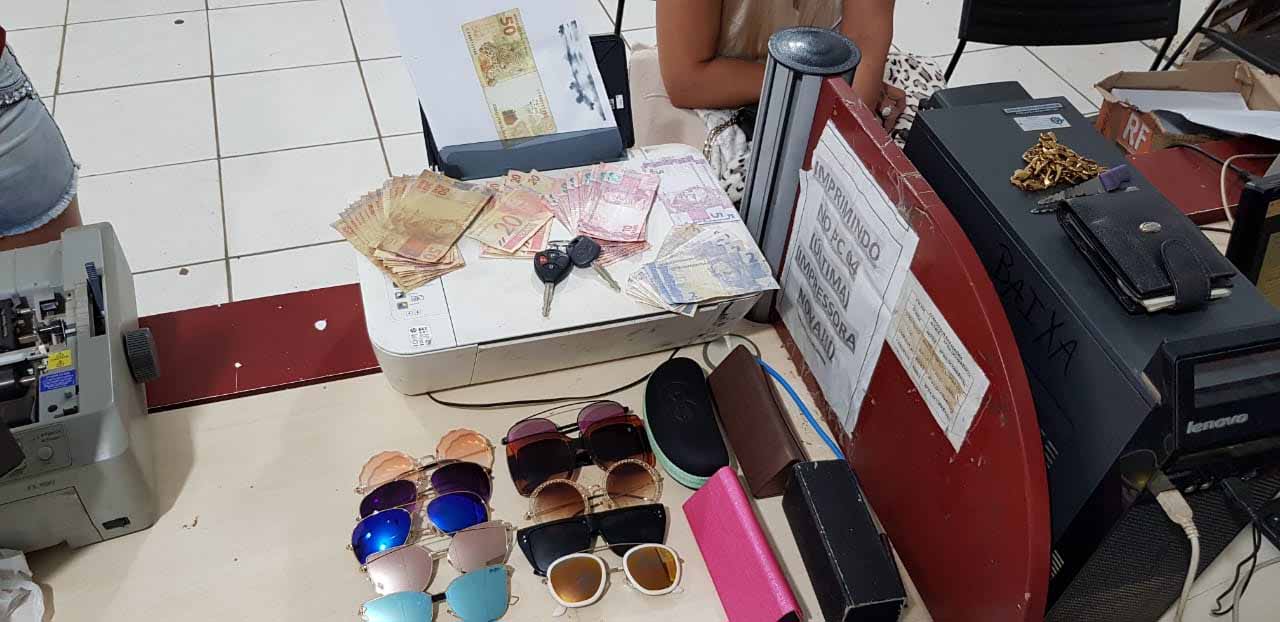 Jefter foi questionado como havia obtido a chave e os documento do veículo. Segundo a polícia, ele disse que um elemento conhecido como Renan lhe pediu para buscar a chave e os documentos no estacionamento de um supermercado na rua Algodoeiro, zona sul da cidade. Os pertences teriam sido entregues a ele por um suspeito identificado como Normando Félix da Costa, 38 anos, que lhe prometeu R$ 2 mil para pegar a caminhonete e levar até o setor chacareiro. Na casa de Jefter foram encontrados vários óculos que estavam dentro da caminhonete na hora do furto e uma impressora com várias cédulas falsas de reais.