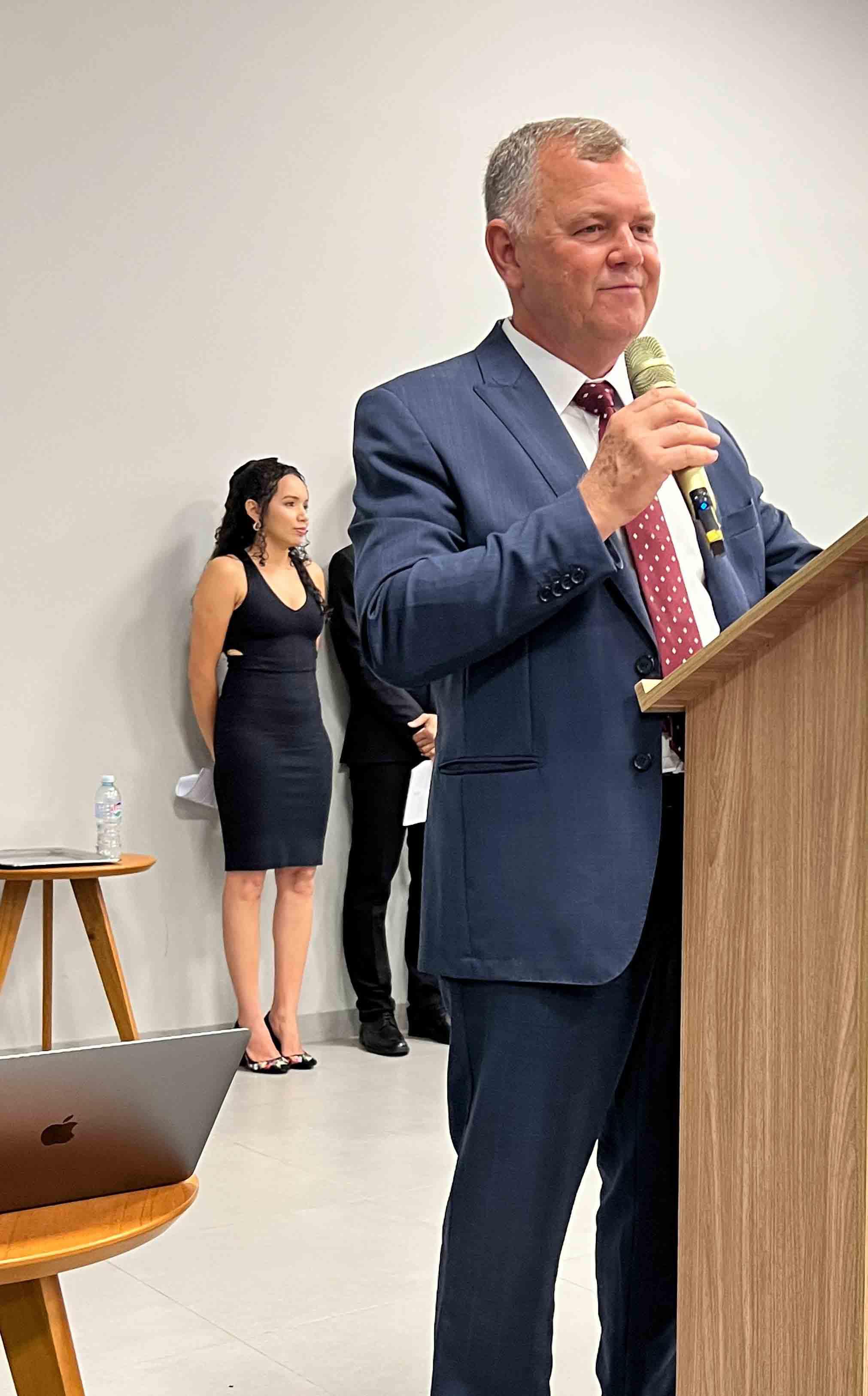 Hoje, no auditório da Associação Comercial e Industrial de Jaru, aconteceu a formatura da primeira turma de Medicina Veterinária do campus do IFRO, um curso gratuito oferecido por uma instituição federal. O deputado federal Lúcio Mosquini foi o patrono da turma e grande idealizador desse projeto, que nasceu de sua visão em 2018. Mosquini trabalhou para trazer o curso a Jaru, e agora celebra junto aos novos médicos veterinários a realização de um sonho que transforma a história da cidade.