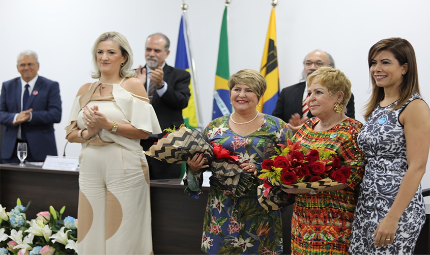 Emocionada, a filha do desembargador César Montenegro, Maria Eugênia Dantas Montenegro, convidada a participar da mesa, agradeceu. “Meu pai veio para cá em 1967, e tinha uma paixão por este Estado. Agradecemos, porque vocês eternizaram o nome dele”, disse. Ela e a irmã Sônia receberam, ao final da solenidade, homenagens que foram entregues pela juíza auxiliar da presidência do TJRO, Euma Tourinho, e por Elaine Piacentini, chefe de gabinete da Secretaria Geral do TJRO.