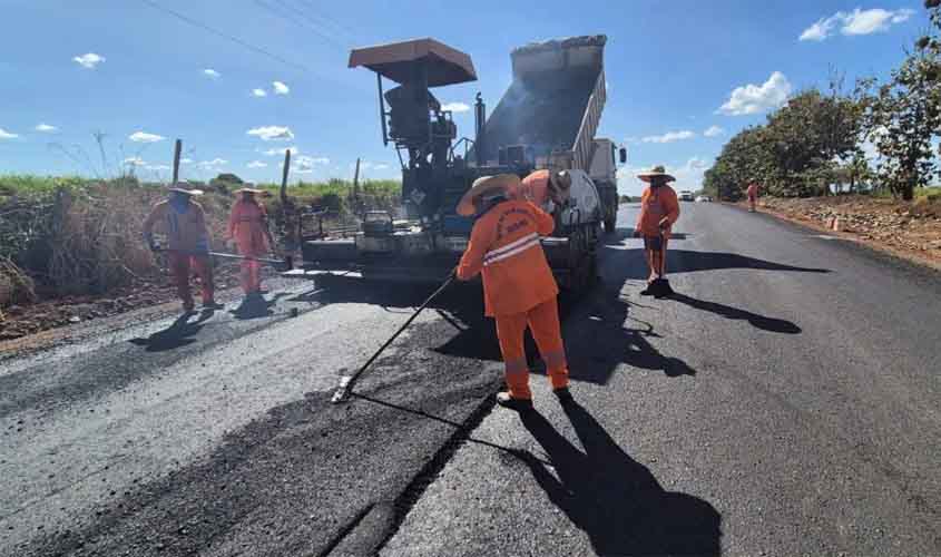 Trechos da RO-492 recebem nova capa asfáltica entre a RO-491