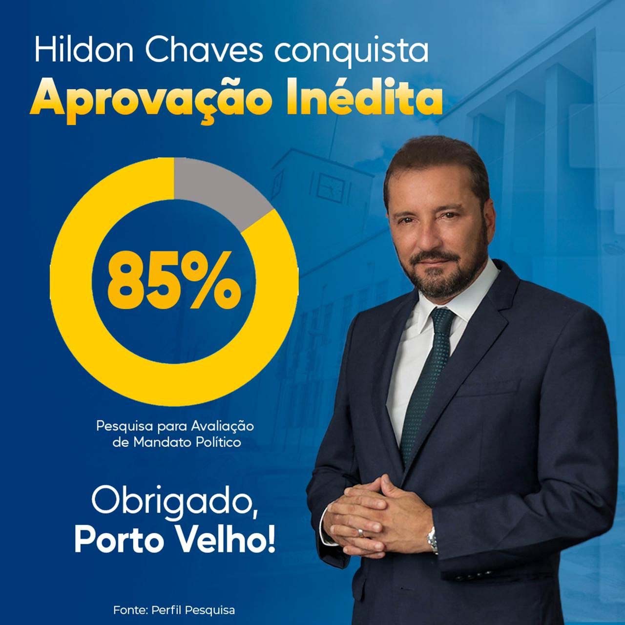 O questionário para os entrevistados contava com perguntas espontâneas e que exigiam resposta objetiva. Quando indagado se aprovava ou desaprovava a forma como o prefeito Hildon Chaves vem administrando Porto Velho, 85% dos entrevistados responderam que aprovam o trabalho realizado pelo gestor municipal.