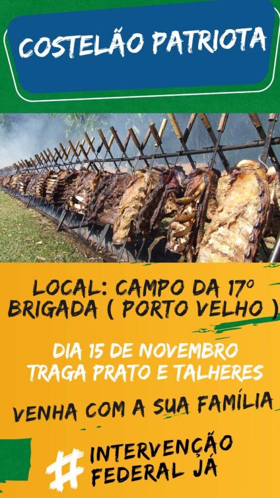 Convite do ‘costelão patriótico’ em Porto Velho (RO)