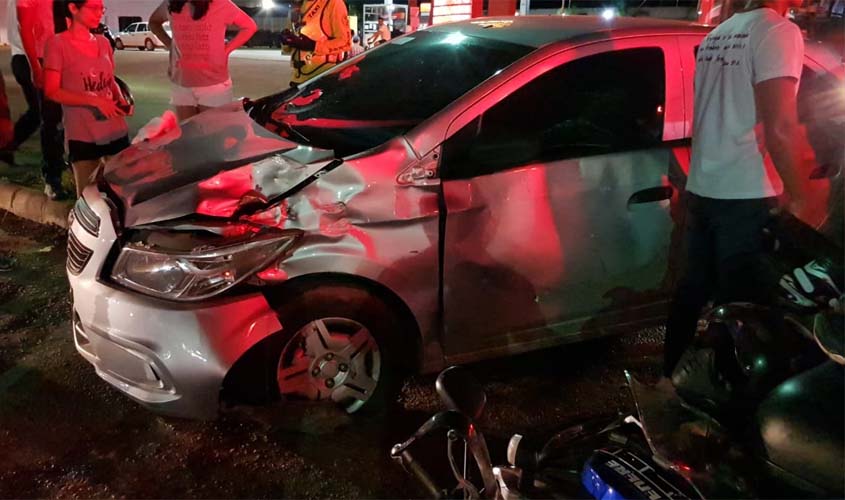 Porto Velho, Rondônia - Um grave acidente de trânsito foi registrado na noite de sábado (26). Uma motociclista bateu na lateral de um carro modelo Ônix. Na sequência, o automóvel colidiu com outro carro, um Ford Ka, no cruzamento das avenida Rio Madeira com Rio de Janeiro, bairro Lagoa, em Porto Velho.