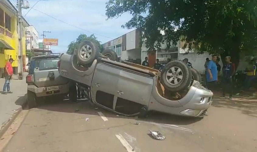 Grave colisão entre três carros resulta em capotamento no centro de Porto Velho