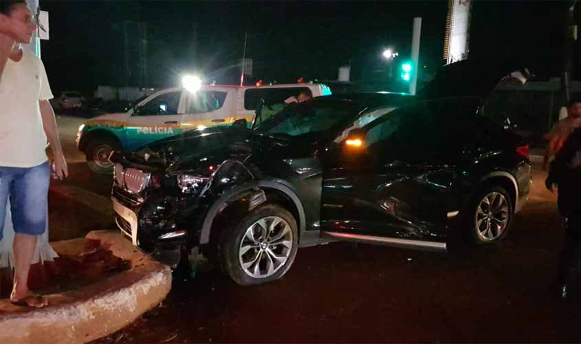 Porto Velho, Rondônia - Policiais militares do Batalhão de Trânsito registraram um grave acidente envolvendo três veículos - uma caminhonete Ford Ranger, uma BMW e uma motocicleta-, no final da noite de domingo (19), no cruzamento das avenidas Mamoré com Imigrantes, bairro Pedacinho de Chão.