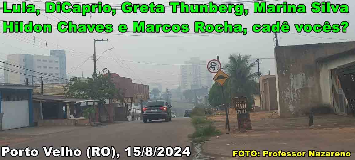 A vedete do clima mundial, a jovem da Suécia, Greta Thunberg finalmente veio a Porto Velho. E não veio sozinha. Acompanhada do cantor Leonardo DiCaprio, Anitta, da ministra Marina Silva e do presidente Lula chegaram de ônibus à “capital das sentinelas avançadas”, pois o acanhado campo de pouso da cidade estava interditado para pousos e decolagens e por isso os dois voos diários foram transferidos para Manaus no Amazonas. Neste dia 15 de agosto de 2024, o Armagedon se instalou por aqui. A fumaça das queimadas provocadas pelos rondonienses encobriu por completo a cidade. Mas o exótico grupo de “defensores do clima” e do meio ambiente ficou bastante entusiasmado com a cidade, o estado e a população em geral. A ministra Marina Silva era uma das mais otimistas. “Nossos candidatos e apoiadores vão arrasar nessas eleições”, disse ela rindo.