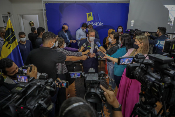 Prefeito recebeu a imprensa no auditório do Prédio do Relógio