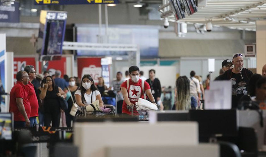 Passageiros e funcionários circulam vestindo máscaras contra o novo coronavírus (Covid-19) no Aeroporto Internacional Tom Jobim- Rio Galeão - Fernando Frazão/Agência Brasil