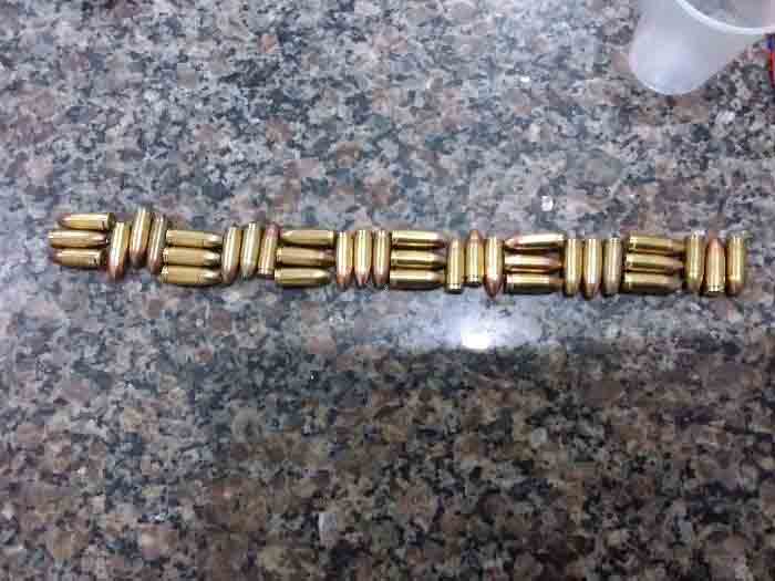 Durante a busca pessoal, a arma de fogo foi localizada, sendo uma Pistola Calibre 9 mm, que estava com o carregador e municiada, e no interior do veículo foram encontrados mais 02 carregadores, cada um contendo 12 munições.