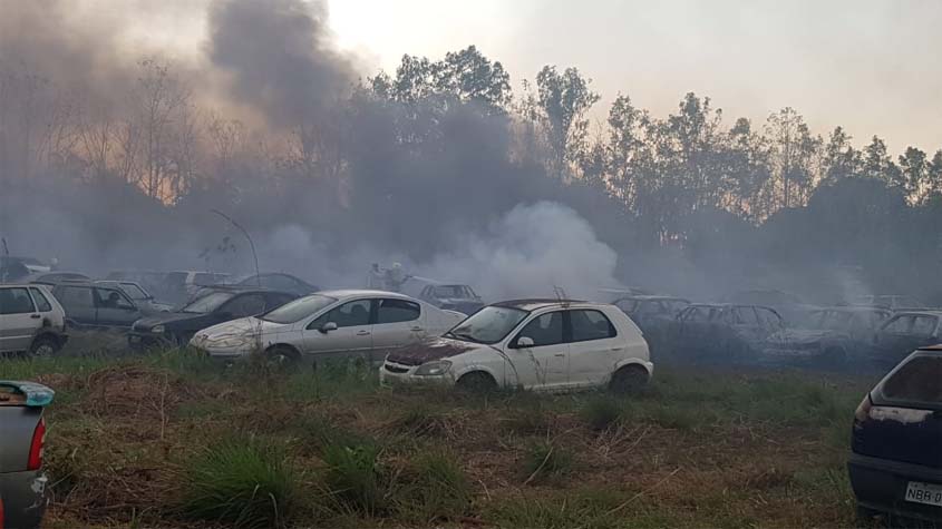 Incêndio de grandes proporções destrói dezenas de carros no pátio da Polícia Civil
