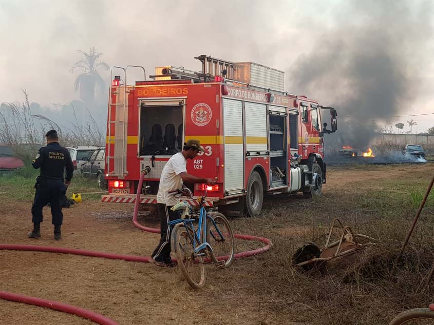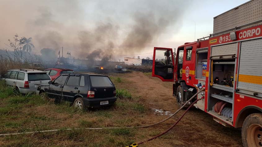 Equipes do Corpo de Bombeiros e a Brigada Municipal foram até o local para tentar combater o incêndio, mais em decorrência do fogo ter se alastrando muito rapidamente, tiveram dificuldades para controlar o sinistro, que começou na parte de fora do pátio e logo atingiu os veículos.