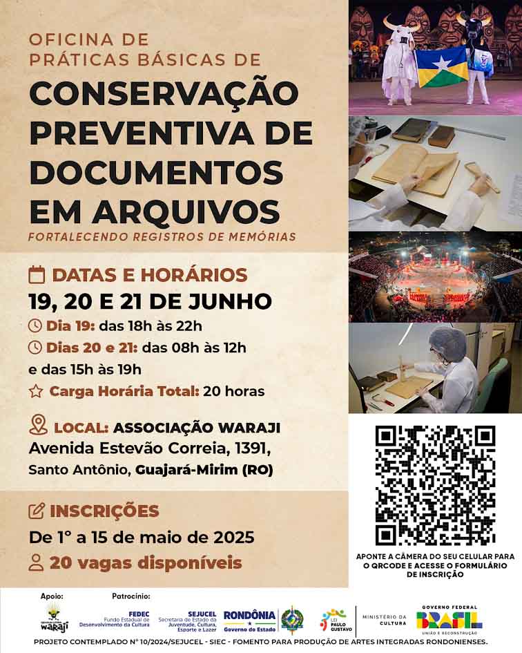 A Oficina de Práticas Básicas de Conservação Preventiva de Documentos em Arquivos -Fortalecendo Registro de Memórias, pretende valorizar a história de Guajará-Mirim, por meio dos seus registros, principalmente no que se refere ao tradicional Festival Folclórico Duelo da Fronteira, reconhecido como Patrimônio Cultural do Estado e do Município.