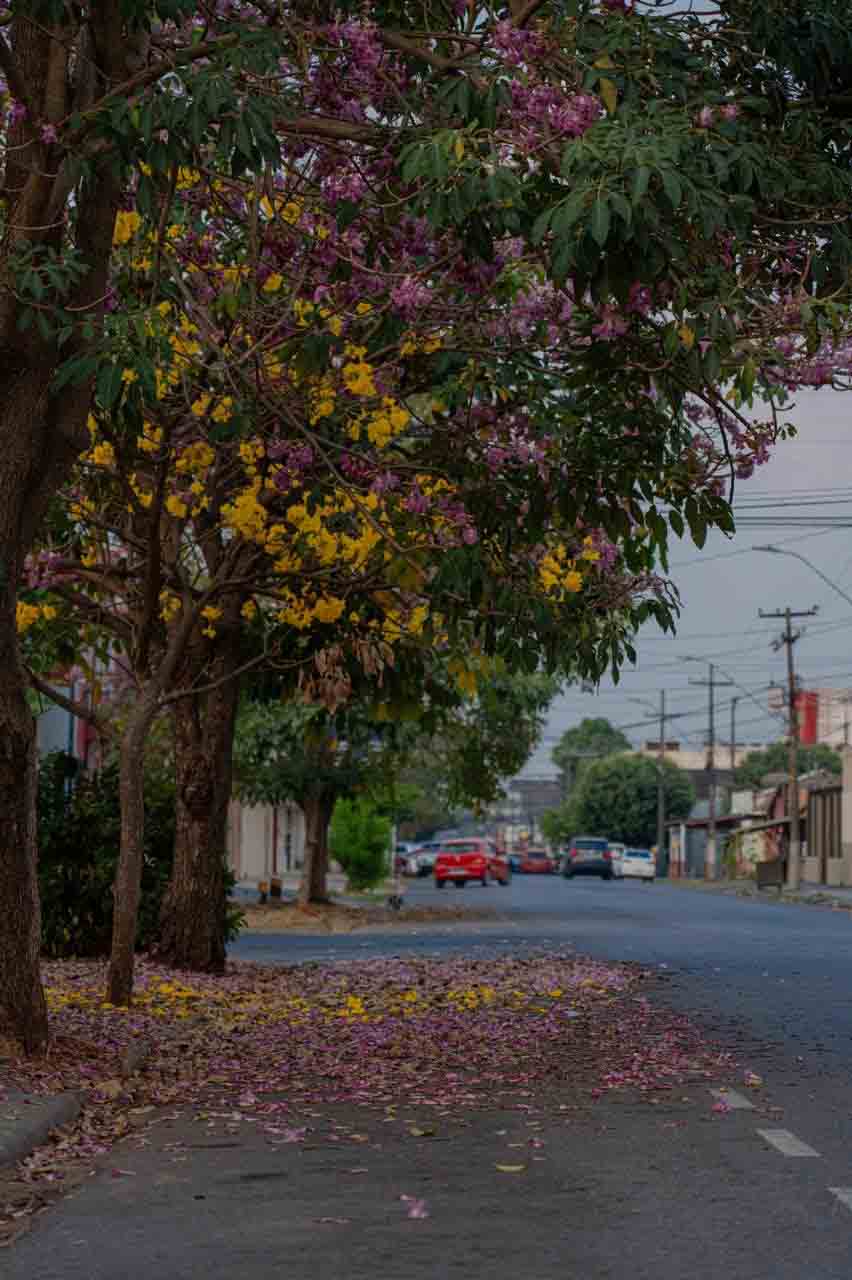 “É um período de pouca chuva, pouca água, as plantas sofrem um estresse por causa disso e então florescem para que consigam formar as frutas e sementes e, dessa forma, se perpetuar no local”, disse. Logo depois de setembro, outro processo acontece, o de renovação das folhas. Toda a cor das flores vai desaparecer e a árvore vai ficar só com galhos para que no próximo ano haja o mesmo processo”, pontua Joana.