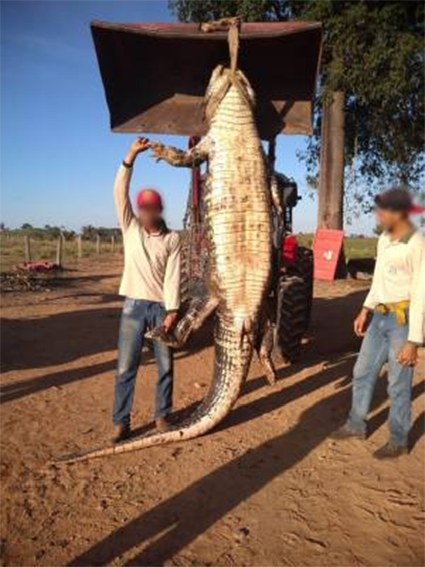 O agricultor e servidor público que compartilhou a fotografia disse que o animal foi laçado pelos funcionários de uma fazenda às margens do Guaporé, mas eles também não querem se identificar, temendo serem processados por crime ambiental.