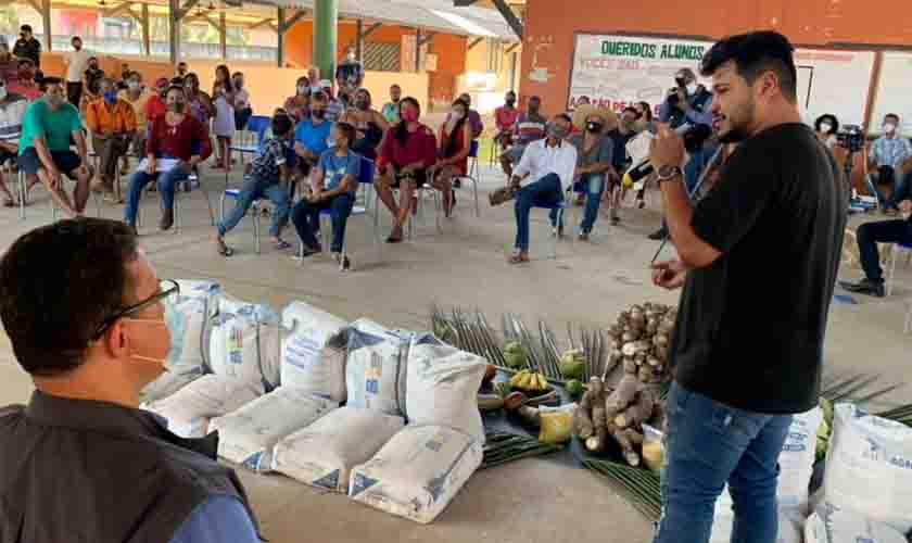 Deputado Marcelo Cruz nesta sexta-feira (30), participou de cerimônia de entrega de 2.708 sacos de 40 kg aos produtores rurais das Comunidades de Aliança, no Distrito de São Carlos, Bom Jardim, Terra Caída, Cavalcante, Nazaré, Silveira e Demarcação no Distrito de Calama em Porto Velho. Estiveram presentes na cerimônia o Governador Marcos Rocha (Sem Partido), Evandro Padovani Secretário de Agricultura, Luciano Brandão Presidente da Emater-RO, João Batista Presidente da COMADE, e os vereadores Isaque Machado e Carlos Damaceno, ambos do PATRIOTA.