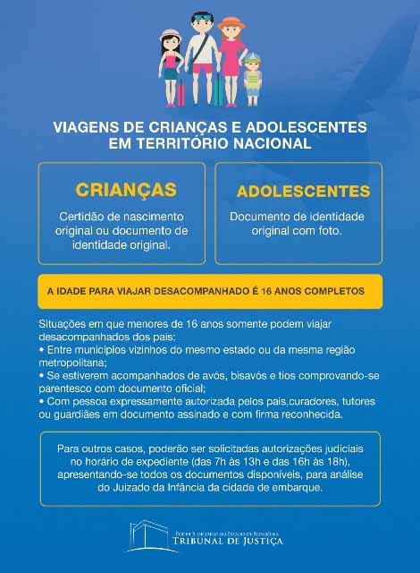A lei, sancionada pelo presidente Jair Bolsonaro, determinou que, até completar 16 anos de idade, crianças e adolescentes só podem fazer viagens nacionais acompanhados dos pais, dos responsáveis, de parente até o terceiro grau (com documentação que comprove o parentesco) ou de pessoa maior de idade com autorização por escrito de pai, mãe ou responsável.
