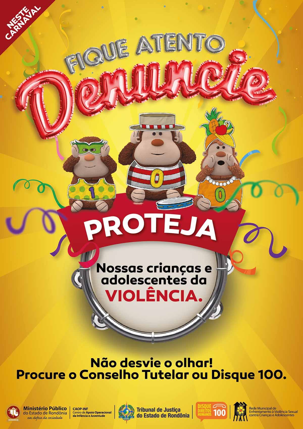 Com o tema “Não desvie o olhar”, uma campanha para conscientizar a sociedade sobre o perigo a que são expostas as crianças durante o carnaval é realizada pelas instituições que prestam atendimentos à criança e ao adolescente. O Juizado da Infância e da Juventude do Tribunal de Justiça de Rondônia integra a relação dos participantes.