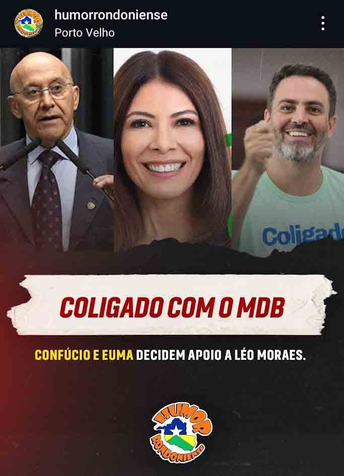 Não se sabe qual é a fonte, mas mesmo assim divulgou que Léo Moraes (candidato à Prefeitura de Porto Velho pelo Podemos) teria recebido apoio oficial de Euma Tourinho e do senador Confúcio Moura, ambos do MDB.