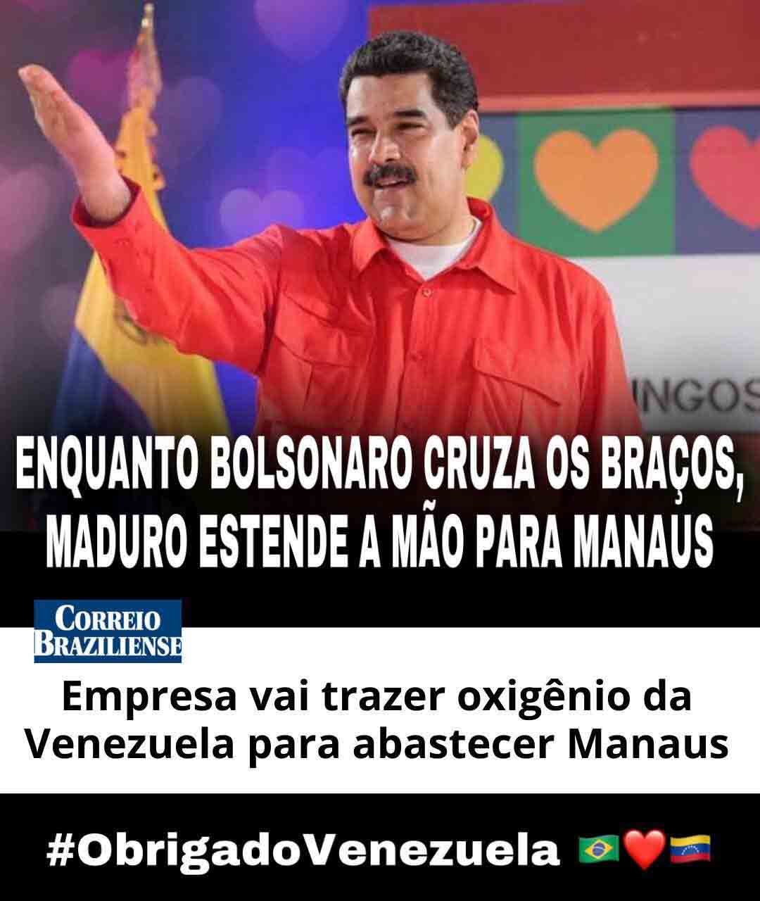 A rede de solidariedade, no entanto, espalhou-se pelo Brasil inteiro e também em partes do mundo. Artistas, intelectuais, desportistas, empresários de multinacionais e cidadãos comuns estão fazendo o que os governos estadual e federal não fizeram pela cidade. Ironia suprema, até o governo bolivariano da Venezuela já ofereceu oxigênio para os hospitais de Manaus. “Enquanto Bolsonaro cruza os braços, Nicolás Maduro estende a mão para Manaus” foi a manchete do jornal Correio Braziliense. Segundo o embaixador daquele país, Jorge Arreaza, o governo de Maduro, em nome da solidariedade latino-americana, vai disponibilizar quantidades de oxigênio suficientes para resolver o triste e urgente problema de Manaus. Se isto acontecer, os bolsonaristas já podem mandar os outros brasileiros irem para a Venezuela, pois lá deve ter oxigênio. E torçamos para que a situação de Manaus não seja um prenúncio para o resto do Brasil.