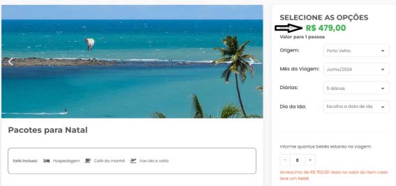 Quer viajar no primeiro semestre de 2024 gastando menos de R$ 500 no pacote que inclui hospedagem e passagem aérea? Aqui você consegue. Buscamos boas oportunidades para quem vai embarcar em Porto Velho e encontramos três destinos bem baratinhos. O primeiro deles é para Natal: pacote de 5 diárias, com voos de ida e volta, com saída prevista para junho do próximo ano a partir de R$ 479. (Veja detalhes abaixo).