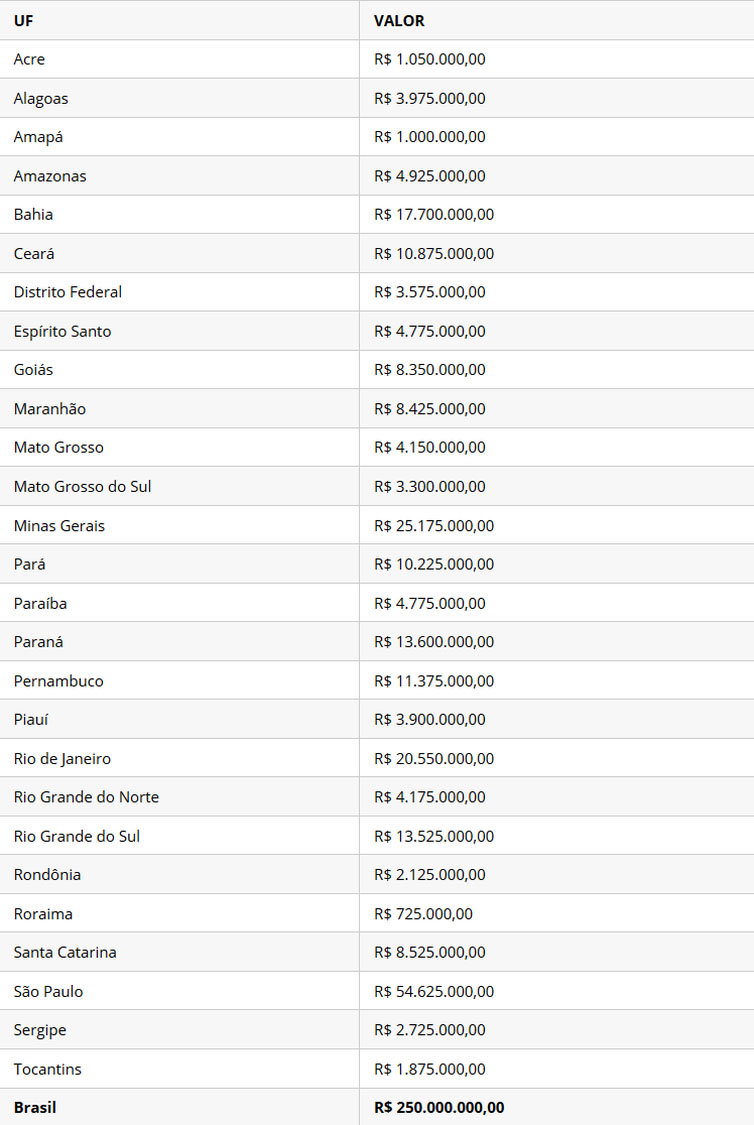 Os gestores estaduais, municipais e do Distrito Federal, responsáveis pela organização e a definição dos critérios que garantam o acesso do paciente aos procedimentos cirúrgicos eletivos, podem se programar para utilização os recursos de acordo com as demandas da população de cada estado. Confira o valor do repasse por estado.
