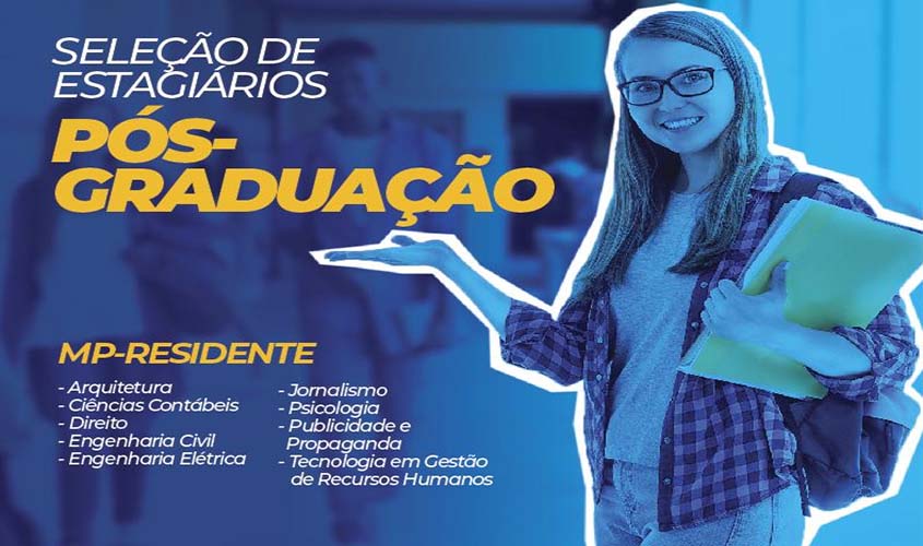O Ministério Público do Estado de Rondônia informa aos bacharéis dos cursos de Arquitetura, Ciências Contábeis, Direito, Engenharia Civil, Engenharia Elétrica, Jornalismo, Psicologia, Publicidade e Propaganda e Tecnologia de Gestão de Recursos Humanos, que estejam ou venham a se matricular em cursos de pós-graduação, que no período de 20 de fevereiro a 18 de março de 2020, estarão abertas as inscrições do Processo Seletivo para Ingresso no Quadro de Estagiários Administrativos de nível Pós-Graduação (MP -Residência). O edital da seleção foi publicado nesta quarta-feira (19/2), no Diário Oficial Eletrônico do Ministério Público de Rondônia (www.mpro.mp.br)