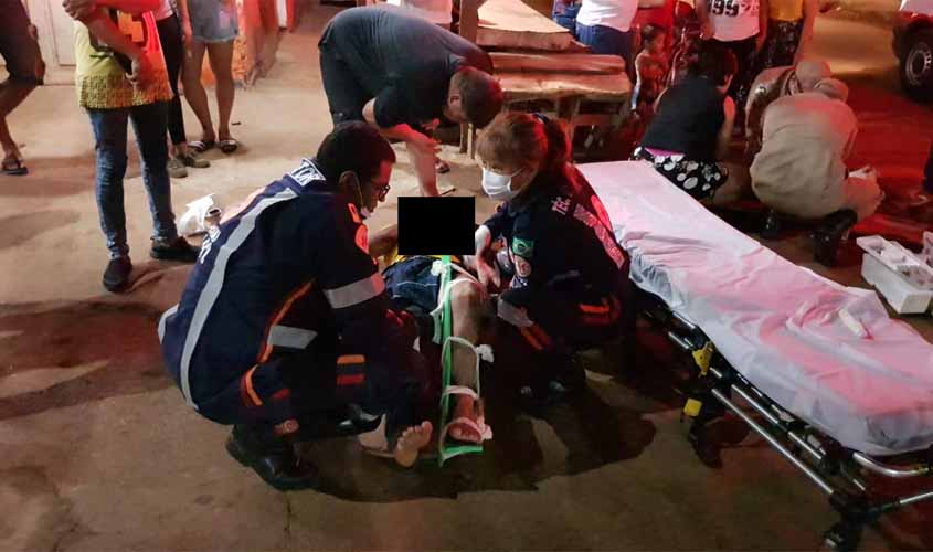Com a forte batida, o casal foi arremessado a vários metros de distância. As duas vítimas ficaram com suspeita de fratura nas pernas, além de sofrerem ferimentos pelo corpo. O motorista fugiu , porém, deixou a placa do veículo jogada no meio da ria.