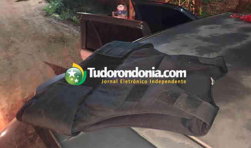 Dentro do carro foi encontrado um colete balístico, um capacete e a chave de uma moto. A perícia fez os trabalhos de rotina no carro e por falta de meios, o veículo ficou no local.